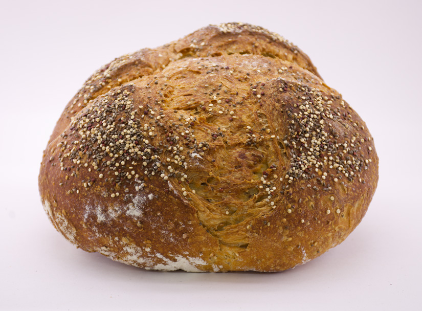 Pa fet amb farina de blat , farina tritordeum, de quinoa i llavors de xia i quinoa.